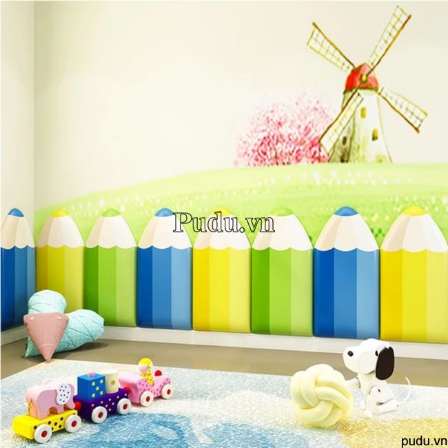 Tấm ốp tường bút chì với thiết kế màu sắc đẹp mắt, an toàn cho bé khi vui chơi mà ba mẹ không cần lo lắng.