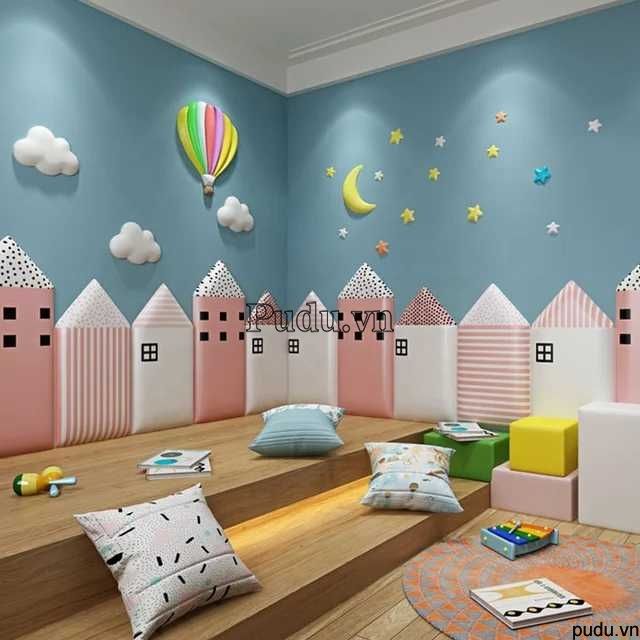 Tấm ốp tường dễ thi công, lau chùi vệ sinh. Có thể dùng để trang trí trong nhà, khách sạn, nhà hàng, quán cafe, phòng ngủ của bé, khu vui chơi trẻ em, trường mầm non.