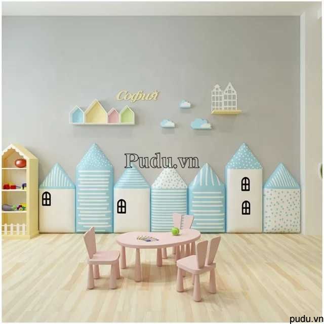 Tấm ốp tường ngôi làng với thiết kế màu sắc đẹp mắt, an toàn cho bé khi vui chơi mà ba mẹ không cần lo lắng.