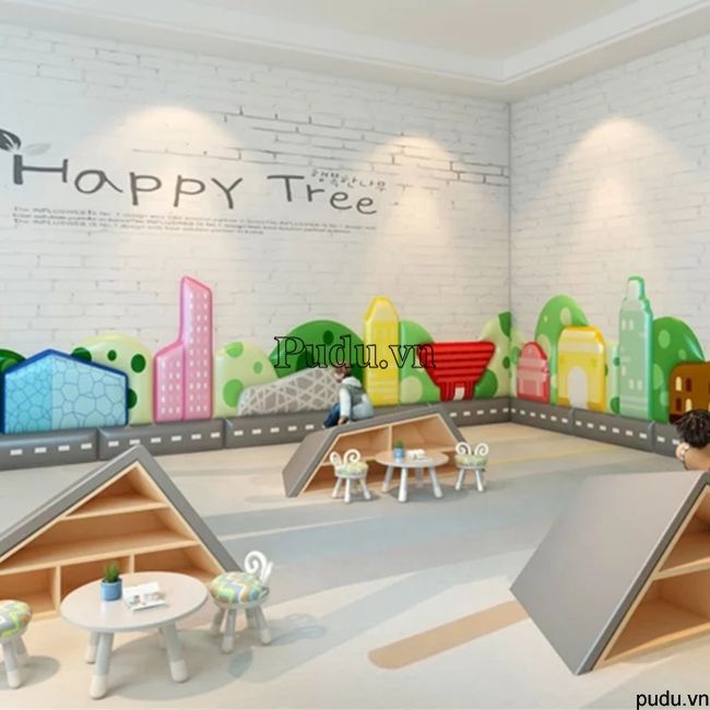 Tấm ốp tường dễ thi công, lau chùi vệ sinh. Có thể dùng để trang trí trong nhà, khách sạn, nhà hàng, quán cafe, phòng ngủ của bé, khu vui chơi trẻ em, trường mầm non.